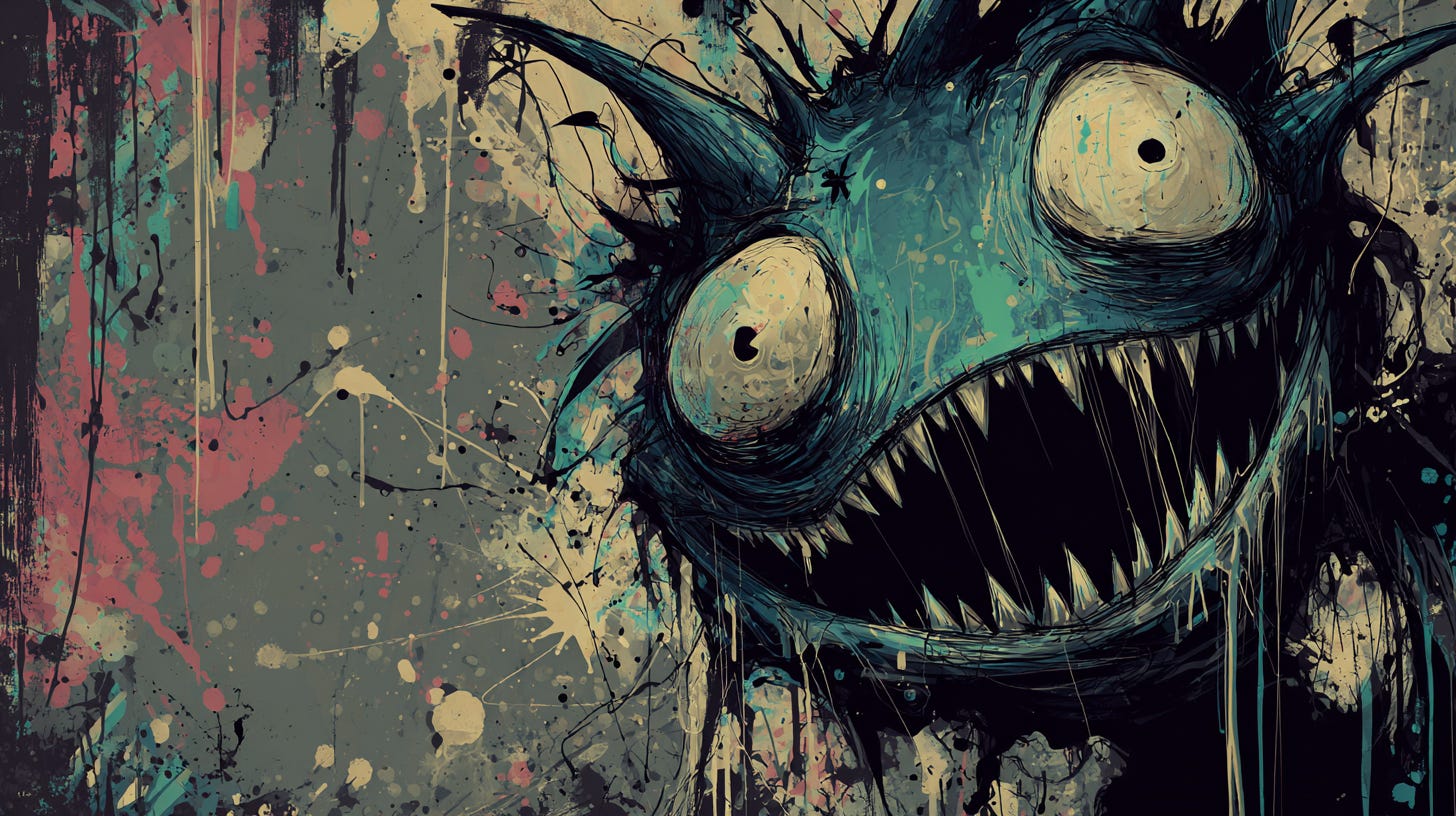 Picking at a chip in the wooden desk, the girl mumbled an unintelligible response. She glanced at the drawing, the vivid colors, the teacher on the paper with too many eyes.