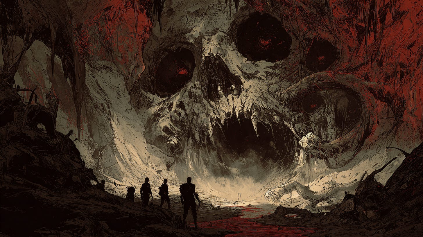 With the light above now nothing more than a pinprick, they reached bottom, finding nothing there but dirt and impending death. The creature there stirred and bared its fangs, the stench of greed making it salivate. There was barely time for agonized screams.