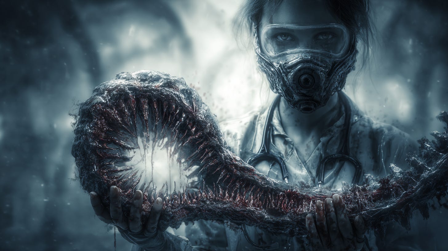 I could feel something move, trying to escape, but the doctor grabbed it and pulled it free. The worm squirmed and gnashed before the life slipped out of it. The doctor simply smiled.
