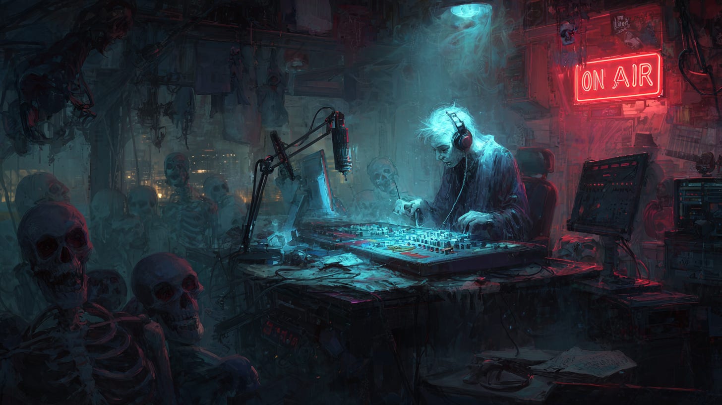 A late-night paranormal radio show lands an unexpected caller