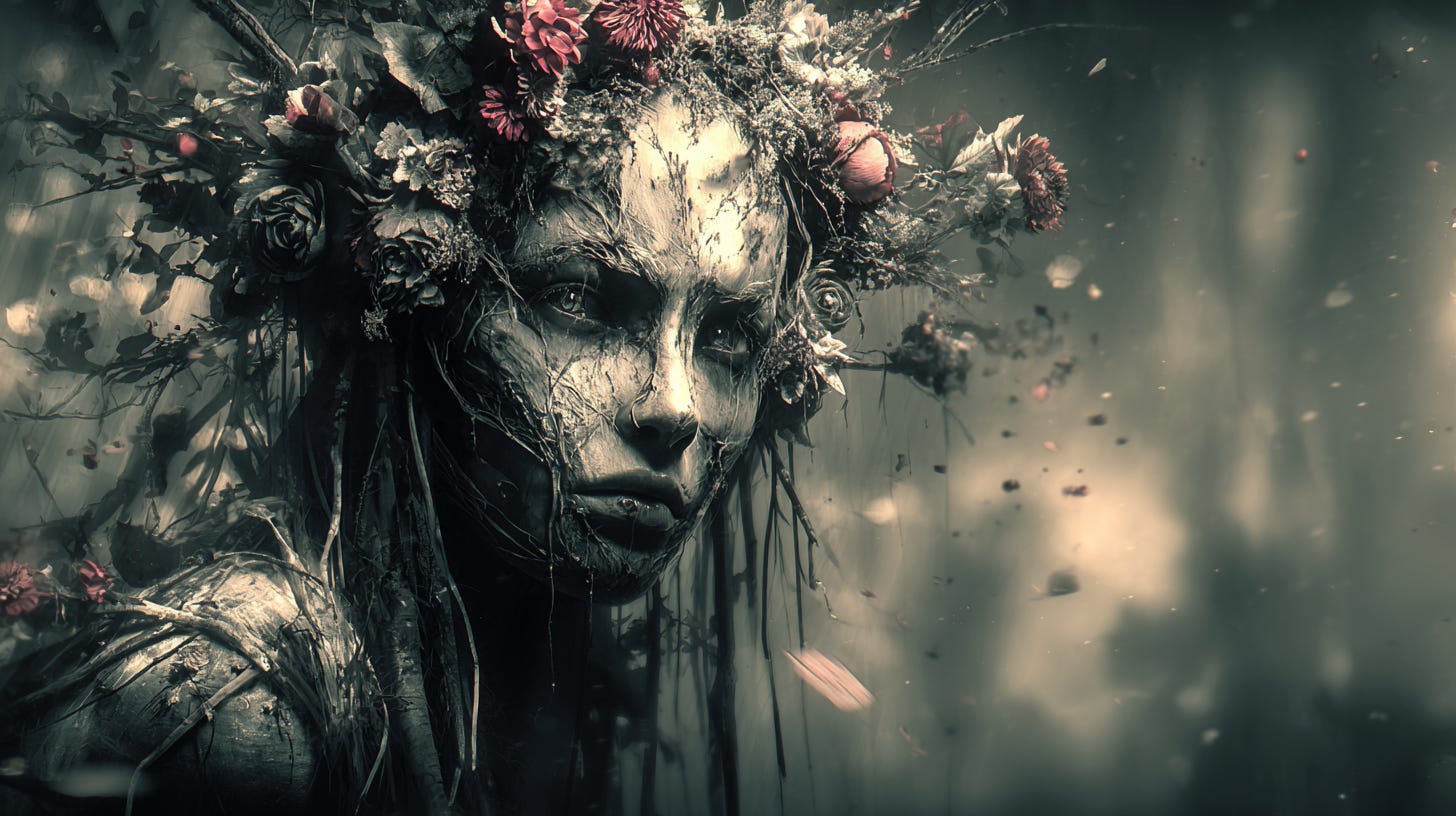 Lush and verdant, the forest called them inside with lullabies that told of eternal life. They obeyed the call and stepped off the trail, the moss like cushions beneath their now bare feet.