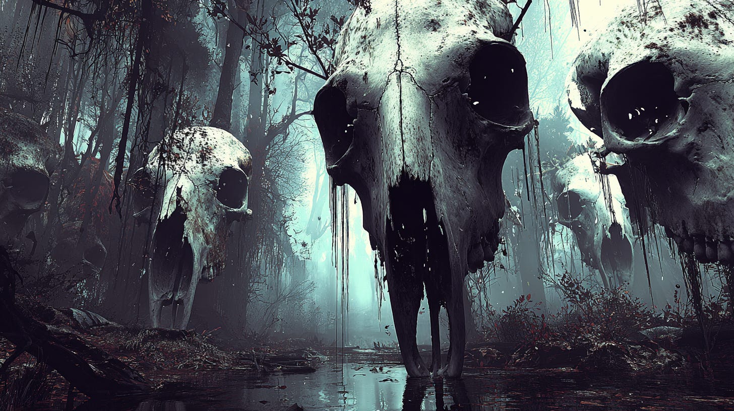 Great horned creatures watched from afar, bleached skulls glowing in the light that broke through the canopy. The real world was lost to them, but this new place of earthen delights felt like home.