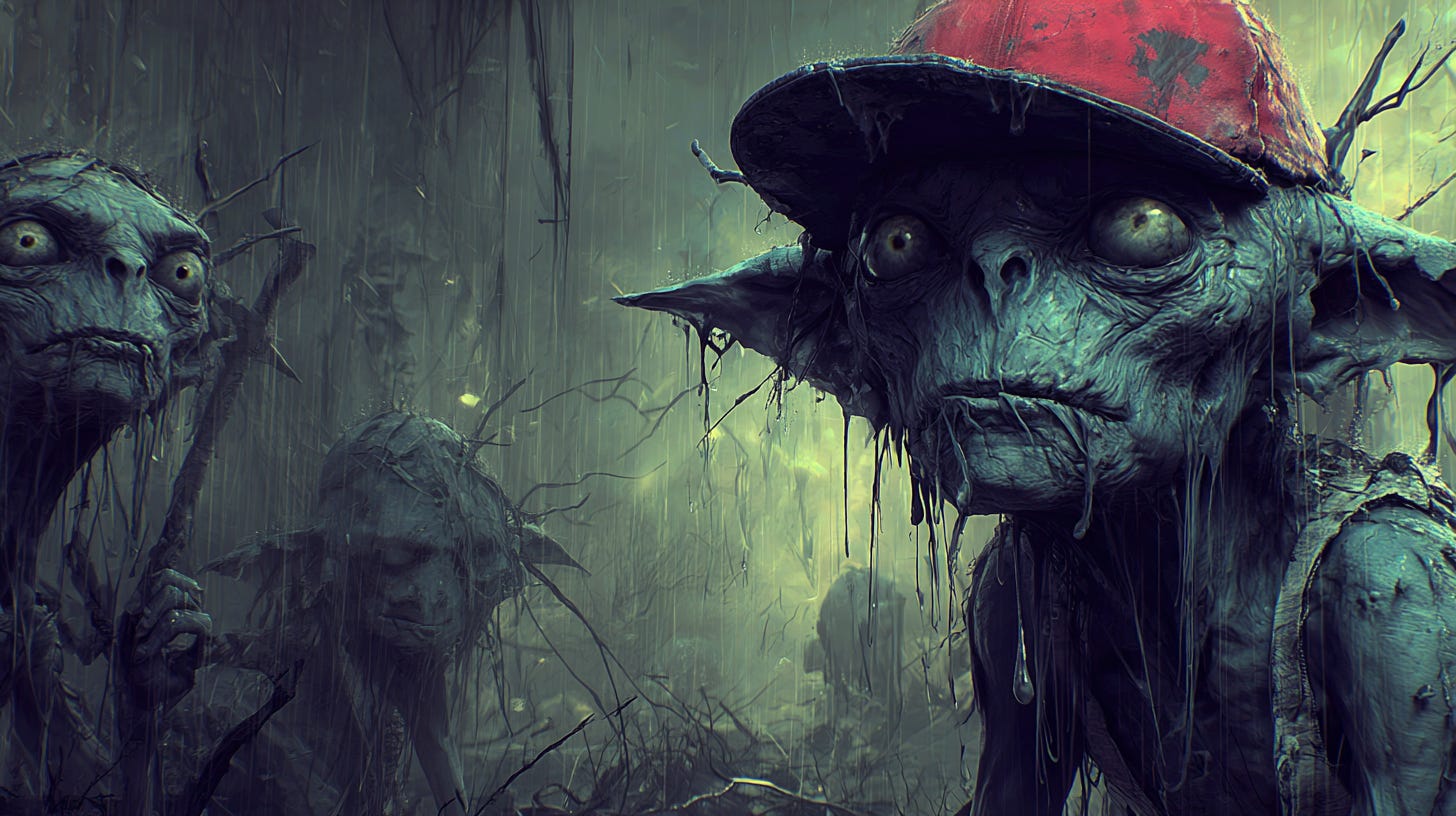 We covered a lot of stuff in Scotland last week, but let’s take another trip back to discuss the Redcap. These goblinlike creatures are saif to inhabit the borders along the line that separates Scotland from England. They are drawn to places of violence and are said to get the red for their hats by dipping them in blood. Surely, dye is the more appropriate option here.