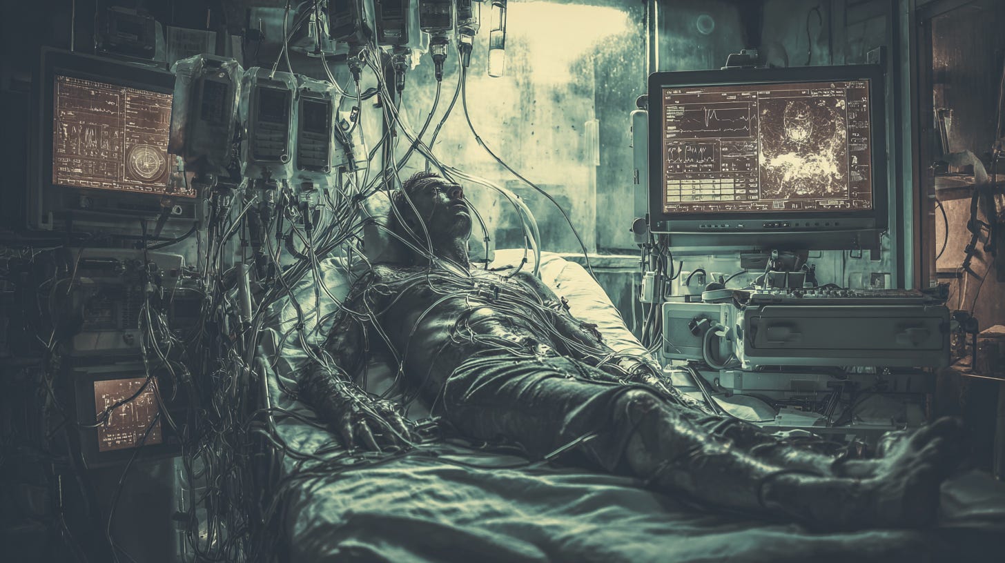 Once again, I hear the doctors talk about me being “brain dead,” which turns to talk of the machines being unplugged. I don’t think those machines are keeping me alive, I believe they are keeping me quiet.