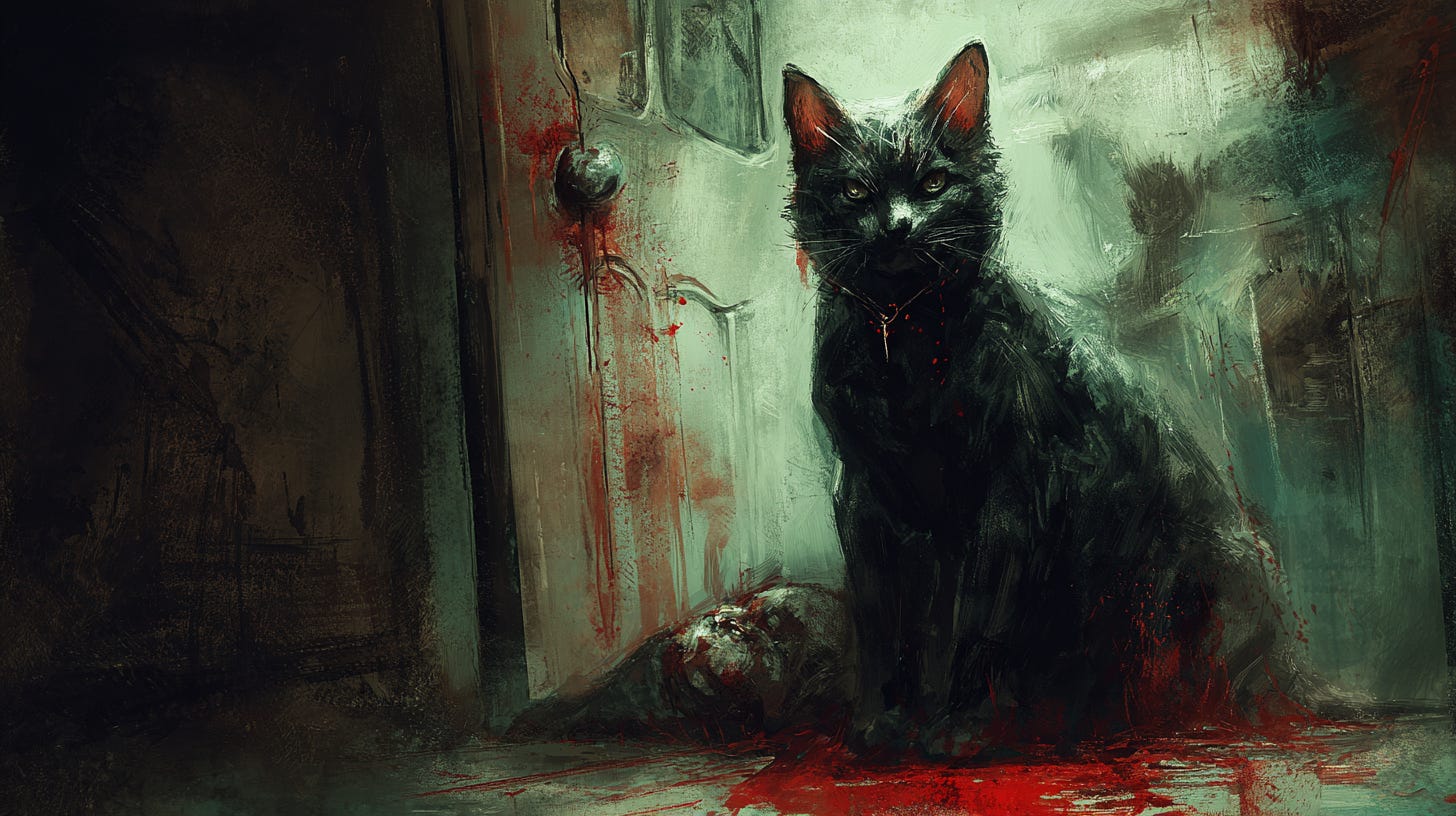 Another cop knelt and stroked the head of the black cat watching the scene play out with disinterest. “A cute guy like you would never hurt a mouse.”